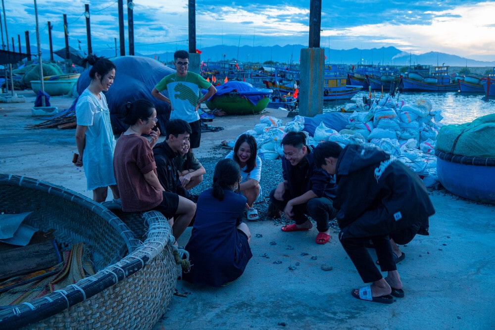 Sau hoạt động thu gom rác thải thì trời cũng dần chập tối, những thành viên của đoàn du lịch Kiên Dũng cũng tụ họp lại, quây quần bên nhau và trò chuyện vui vẻ sau một chuyến trải nghiệm đầy mới mẻ tại cù lao Câu.