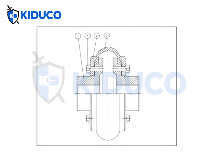 Lắp phần tử cao su đàn hồi vào giữa mặt bích và nắp che.