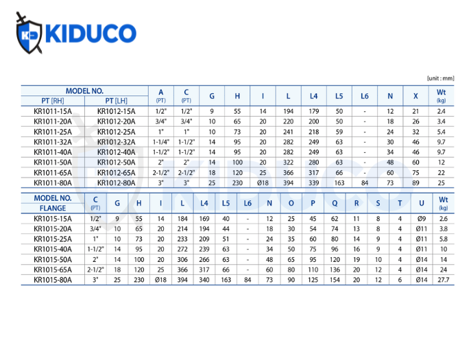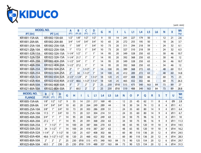 Kích thước: 15A ~ 80A (½" ~ 3")