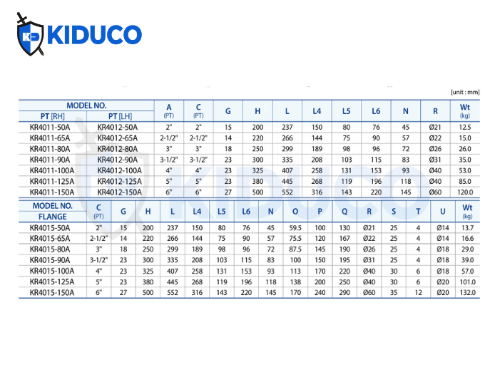 Kích thước: 50A ~ 150A (2” ~ 6”)