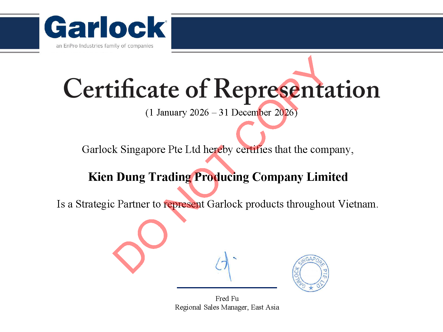 Công ty Kiên Dũng (KIDUCO) hiện là đại diện bán hàng mảng sản phẩm vật liệu làm kín của Garlock tại Việt Nam. Garlock cam kết hỗ trợ hết sức về thông tin kỹ thuật, dịch vụ bán hàng và dịch vụ sau bán hàng để Kiên Dũng phục vụ tốt nhất cho quý khách hàng.