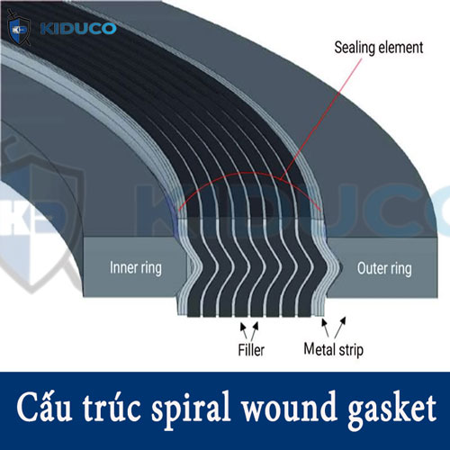 Nguyên lý làm kín cơ bản của spiral wound gasket bao gồm dải kim loại hình chữ V nằm xen kẽ và chất độn phi kim. Lớp quấn đầu tiên và lớp quấn cuối cùng chỉ bao gồm các dải kim loại để gia cố vòng xoắn trên đường kính trong và ngoài. Cấu trúc "lớp xen kẽ" này, kết hợp với hình chữ V đặc biệt của dải kim loại xoắn ốc và các đặc tính của vật liệu chèn, làm cho gioăng spiral wound gasket trở nên lý tưởng cho các ứng dụng có nhiệt độ cao và áp suất cao.