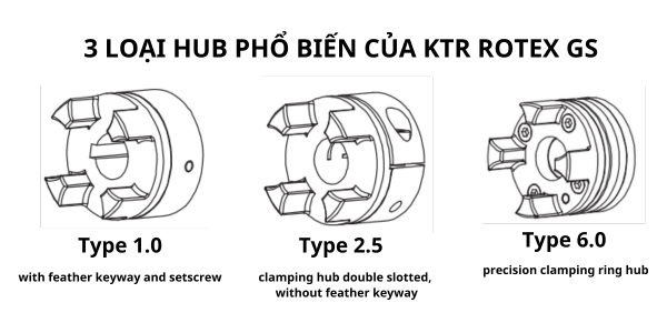 Thông số kỹ thuật cho khớp nối KTR Rotex GS, hub loại 2.0, 2.1, 2.5 và 2.6