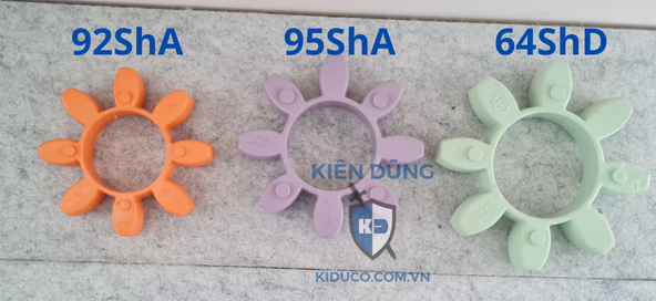 - Về moment xoắn lớn nhất (Torque), chúng tôi cung cấp 3 số liệu tương ứng với 3 màu đệm giảm chất cam - tím - xanh lá, cũng là độ cứng tăng dần (92ShA, 98ShA, 96ShD).