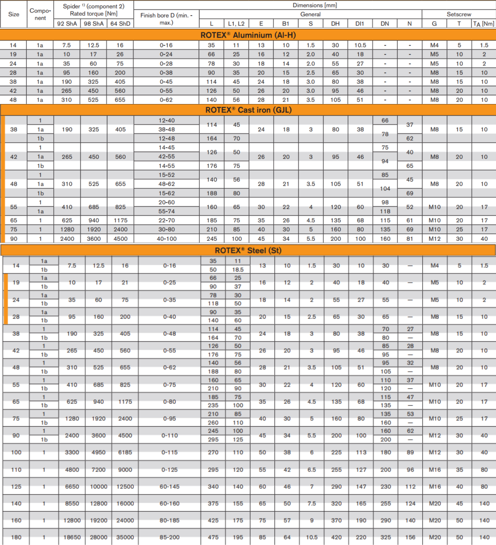- Về chất liệu, chúng tôi cung cấp vật liệu nhôm, thép và gang ở khớp nối KTR Rotex Size 48.